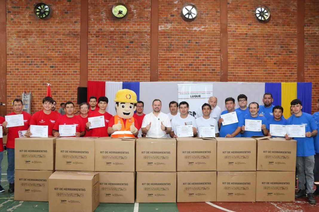 Como parte del acto protocolar, se realizó la entrega de equipos a 47 instructores activos del programa, quienes estarán a cargo de los cursos en áreas clave como Electricidad, Refrigeración, Metalmecánica, Seguridad Industrial y Construcción, las cuales se distribuyen en los cursos de: Electricidad Domiciliaria, Fontanería , Herrería de Obras, Instalador de Aire Acondicionado, Seguridad Industrial y Salud Ocupacional.