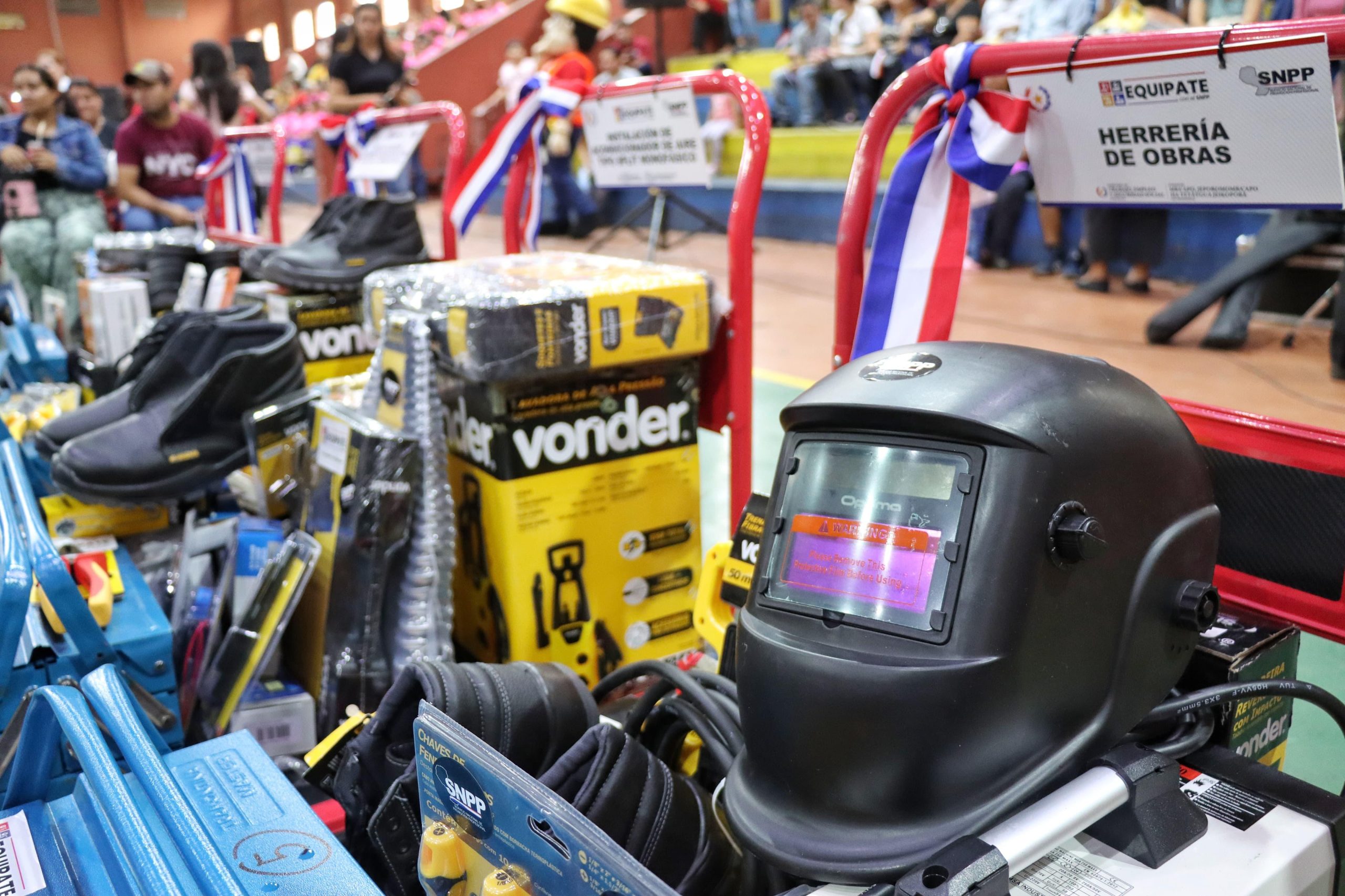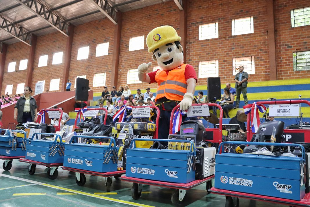 Asunción, Agencia IP.- El Programa «Equipate», del Servicion Nacional de Promoción Profesional SNPP no solo se encarga de capacitar formando profesionales de mando medio en nuestro país, sino también los equipa con las maquinarias y herramientas necesarias para su labor. Paralelamente, los formaliza, ayudándolos a gestionar los mecanismos para que sean trabajadores que aportan al Estado. Recientemen, 20 egresados de la ciudad de Luque, departamento Central, recibieron los equipos necesarios para ganarse la vida de manera formal y contribuir a la sociedad.