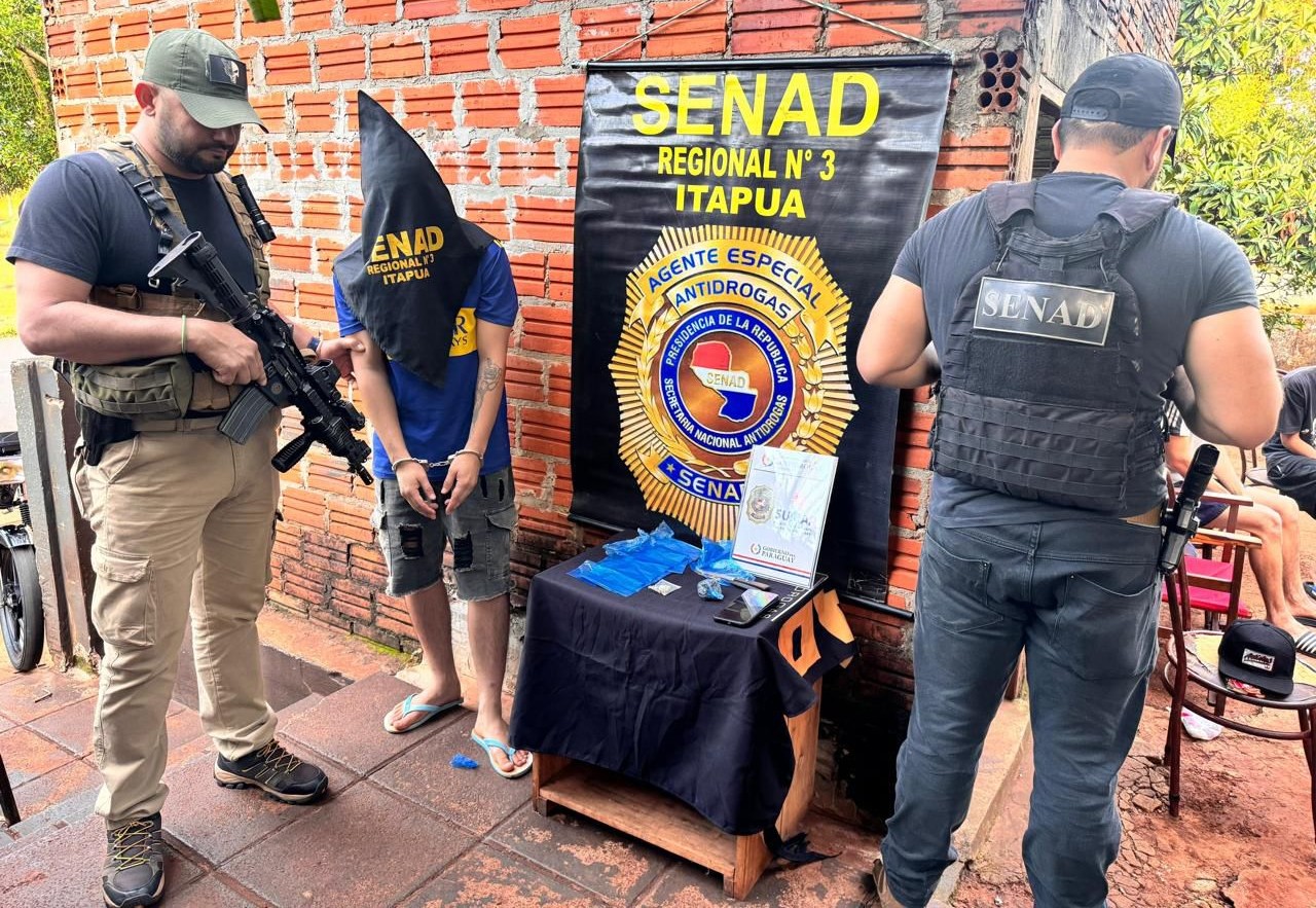 El operativo fue realizado por efectivos de la Secretaría Nacional Antidrogas (Senad), en el barrio San Pedro Etapa 3 de la capital itapuense.