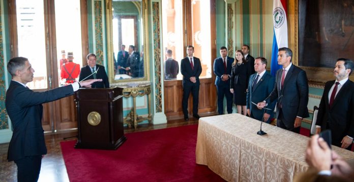 Asunción, Agencia IP.- En un acto realizado en Palacio de Gobierno, Marco Riquelme prestó este lunes juramento como nuevo ministro de Industria y Comercio, en reemplazo de Javier Giménez, quien fue designado jefe de Gabinete de la Presidencia de la República. En su discurso, Riquelme afirmó que «hoy iniciamos la revolución industrial en el Paraguay».