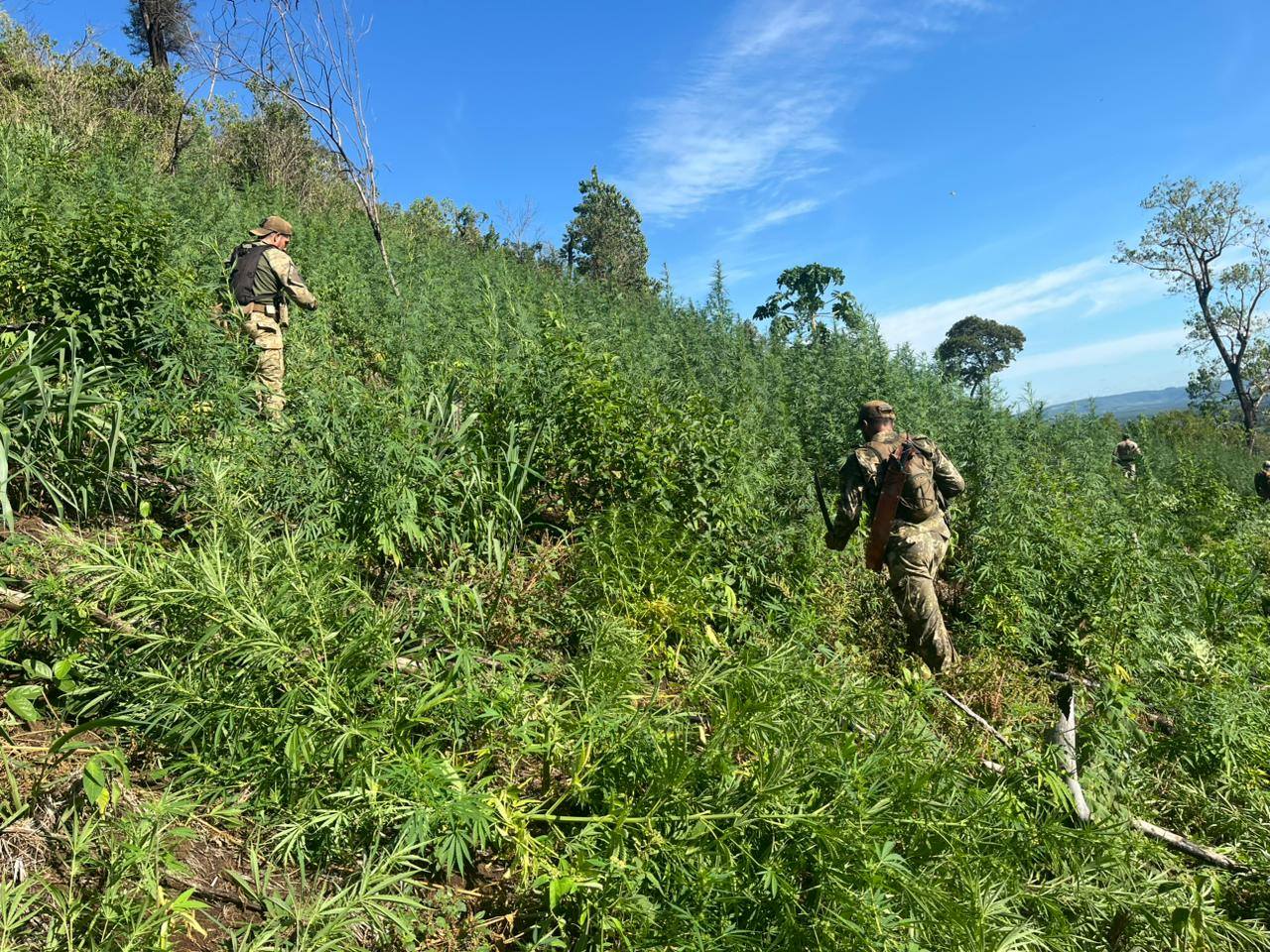En el marco de la Operación «Frente Sur» y con un trabajo de investigación que contó con análisis y evaluación de imágenes satelitales, la Senad sacó de circulación 63 toneladas de marihuana zona de Tava Porã.