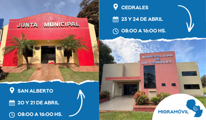 Asunción, Agencia IP.- El Migramóvil se trasladará nuevamente al departamento de Alto Paraná la próxima semana, con jornadas previstas en las ciudades de San Alberto y Cedrales. En estos puntos, los ciudadanos extranjeros podrán iniciar sus solicitudes de residencia y gestionar otros trámites migratorios ante el equipo móvil de la institución.