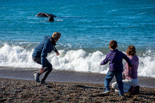 Además del avistamiento embarcado, que se realiza principalmente en la localidad de Puerto Pirámides, existen opciones de observación desde la costa, como en las playas cercanas a Puerto Madryn, donde es posible observar ballenas a corta distancia.