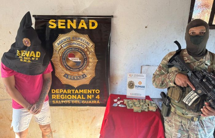 La Secretaría Nacional Antidrogas (Senad) llevó a cabo un operativo que permitió desarticular un presunto punto de microtráfico en el barrio Ko’e Rory de la ciudad de Salto del Guairá. El procedimiento se realizó mediante un allanamiento a una vivienda identificada como foco de comercialización de drogas al menudeo, en el marco de tareas investigativas orientadas a combatir este tipo de hechos en la zona.