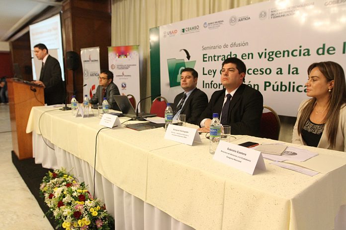 Asunción, IP.- Con el fin de concientizar y asesorar a las personas sobre las ventajas y beneficios del Acceso a la Información Pública, en un trabajo interinstitucional realizaron este jueves el seminario “Entrada en Vigencia de la Ley de Acceso a la Información Pública”, con varios disertantes nacionales e internacionales y paneles de debate, en el hotel Guaraní.