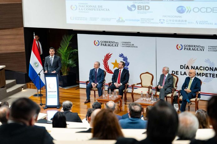 Asunción, Agencia IP.- El presidente de la República, Santiago Peña, resaltó que la libre competencia es la base una economía sana, justa y sostenible. Fue durante la sesión inaugural del Foro Latinoamericano y del Caribe de la Competencia de la Organización para la Cooperación y el Desarrollo Económico (OCDE) y el Banco Interamericano de Desarrollo (BID) que por primera vez se realiza en el país.