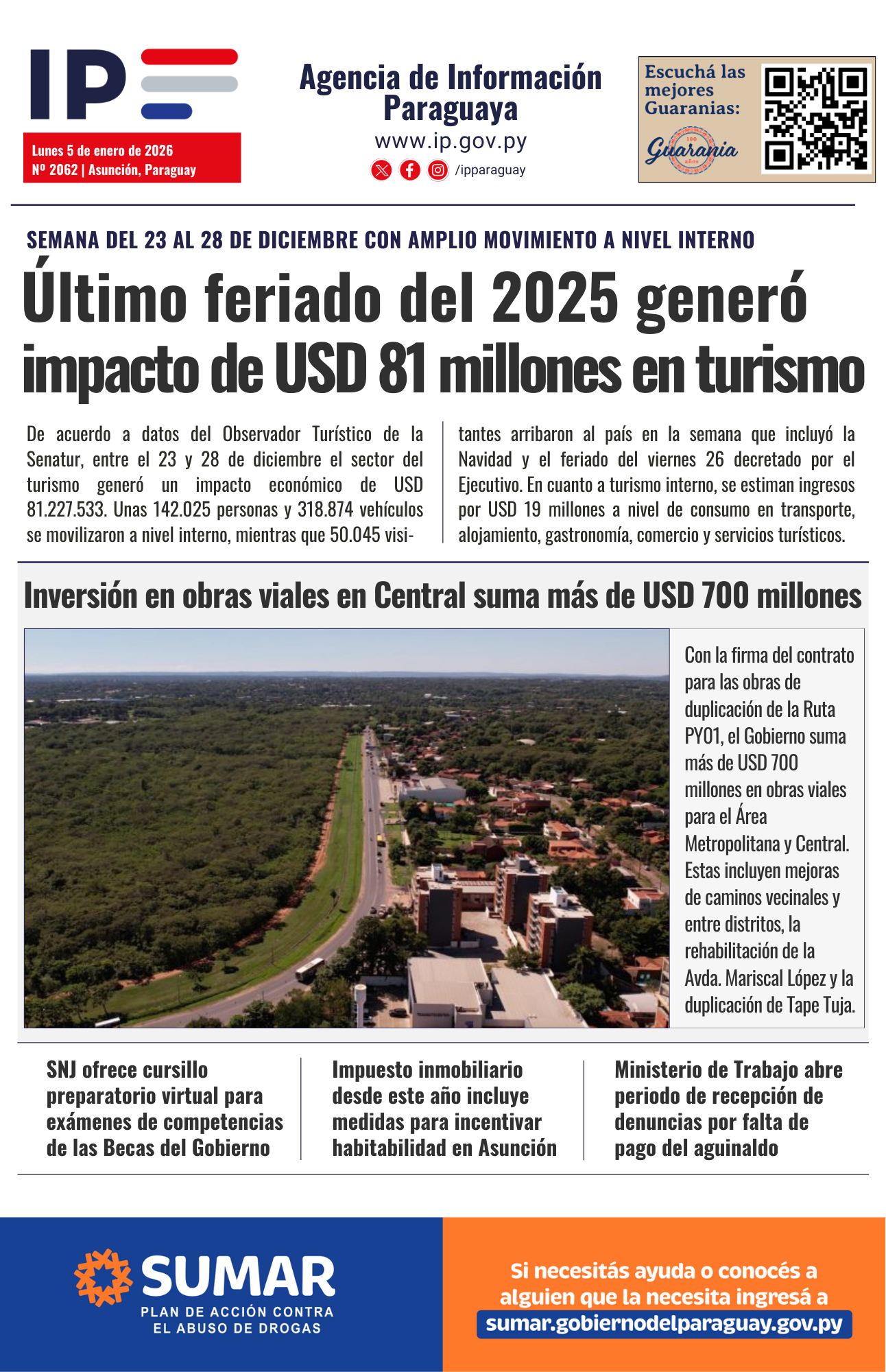 Gobierno tiene invertido más de USD 700 millones en obras viales para el departamento Central