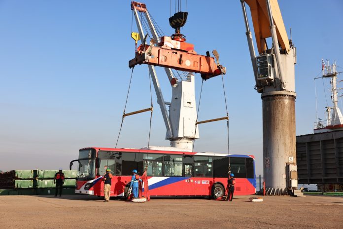 Asunción, Agencia IP.- El presidente de la República, Santiago Peña celebró la llegada de los primeros buses eléctricos fabricados por la empresa taiwanesa Master Bus, que marca el inicio de una nueva era para la movilidad en Paraguay.